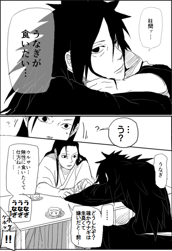 早速ですが、先日UPした柱マダ夫婦(ご懐妊済み←)がウナギを巡ってドンパチする漫画(違ェ)の続きを投下します。